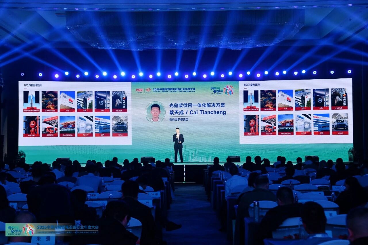 2025年12月12日,由中国内燃机工业协会、中国内燃机工业协会应急动力装备专委会、GPOWER动力展主办的“2025中国内燃发电设备行业年度大会”在四川成都隆重召开,帝森克罗德集团代表 蔡天成 应邀出席会议并作《光储柴微网一体化解决方案》主题分享。以下内容根据现场发言整理,仅供参考。